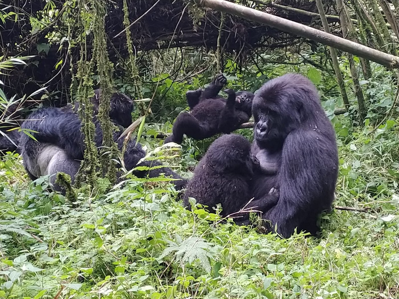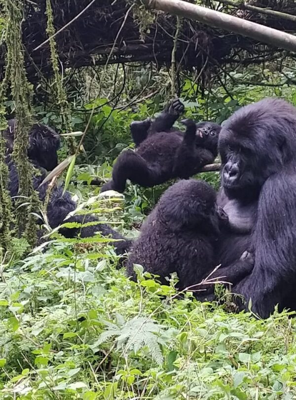 The 1 Day short gorilla tour to Volcanoes national park Rwanda sets off by 4:00 am for a 2 hours drive from Kigali to volcanoes national park in Musanze. Gorilla trekking in Volcanoes is a well managed conservation countrywide initiative for the mountain gorillas, with a set of rules set to protect the endangered species. Before you head into the forest to search for gorillas, the head guide with brief you about rules and how to conduct when you meet the gorillas and what to expect for the tour. For your trekking adventure, your guides, porters and rangers go out of their way to make sure you have a memorable experience. The group moves at the pace of the slowest person to accommodation everyone. The guides are very informative and ready to share all the information on gorillas, their behaviors, conservation and the local community. Chances of seeing gorillas on your trek are high and guaranteed, but just incase you fail to see them, The Uganda Wildlife Authority offers you an opportunity to go back into the forest at half price You have to keep a distance of at least 20 feet away from the gorillas, but as gorillas are wild animals and very curious, they often go up-to the trackers enhancing the experience with the gorillas. Only 8 tourists can track a single gorilla family and visitors are advised to take porters to carry your backpacks as well as help you through tough spots on the hike. You will spend 1 hour with the gorillas, and you return back to the starting point where you will meet your guide. Later have lunch and transfer back to Kigali for drop off at your hotel or airport. End of Tour